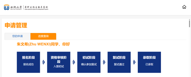 朱文希为人诚实,勤奋好学,办公室总少不了他的身影,虽然一开始他的成绩并不是顶尖,但他从不气馁,合理地规划时间。考试成绩较好时,他戒骄戒躁;考试失利时,他也并不沮丧,而是找老师分析问题进行纠错,为下一次考试做准备。在备考西湖大学的过程中,他的努力令我们为之惊叹。