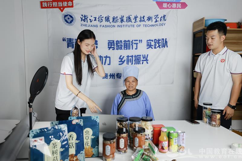 中国教育在线浙江站讯(编辑 邱彬鑫 通讯员 杨琼 何琪 张奕凯)汇聚青春力量,赋能乡村振兴。8月7日,浙江纺织服装职业技术学院“青春有梦 勇毅前行”实践队在指导老师的带领下走出校园,走向乡村,跨越1700公里来到贵州省三都水族自治县开展为期一周的暑期社会实践,以直播带货、宣传非遗、开展推普等方式,助力乡村振兴,用青春的色彩描绘新时代新农村的美丽画卷。