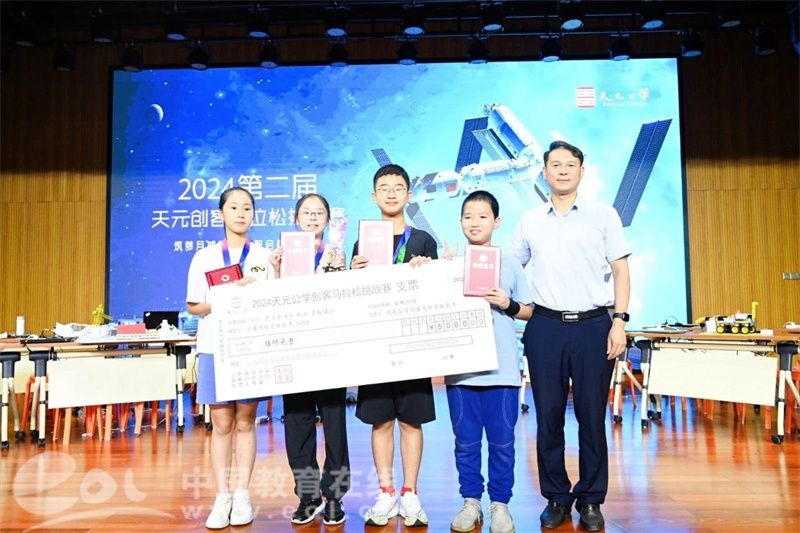 中国教育在线浙江站讯 (编辑 鲁少辛)近日,第二届天元创客马拉松挑战赛决赛顺利落下帷幕。经过两天的激烈角逐,来自全省各地的10支参赛队伍脱颖而出。其中,星际筑梦队获得特等奖,星球开拓队等团队斩获一、二、三等奖。天元公学总校长马智慧、副总校长兼高中部(数学部)校长斯理炯为获奖团队颁奖。