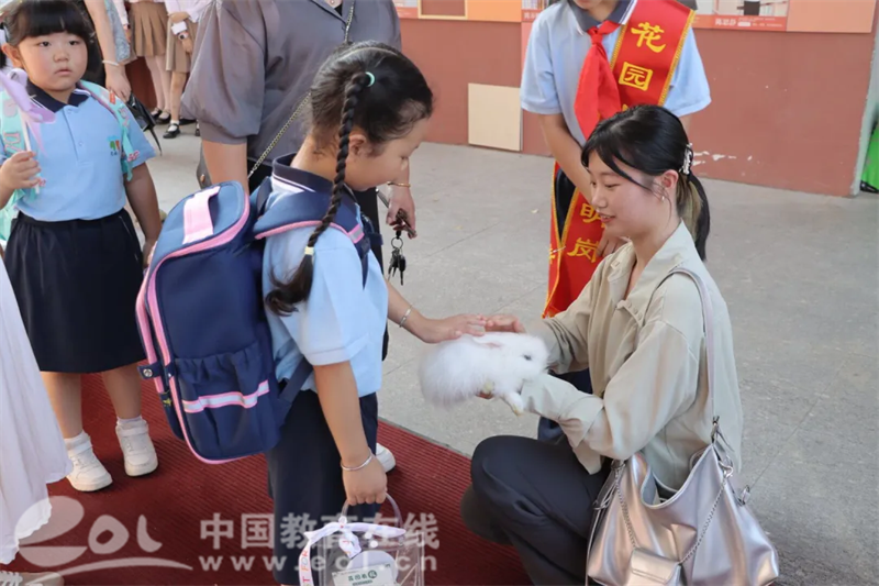 家长们紧紧地牵着孩子的手,一同踏上前往教室的路。一路上,惊喜不断,可爱的宠物兔出现在孩子们的视线中,它们那毛茸茸的身体、红红的眼睛,瞬间萌化了孩子们的心。孩子们兴奋地围上去,轻轻地抚摸着小兔子,感受着这份来自大自然的可爱与温暖。