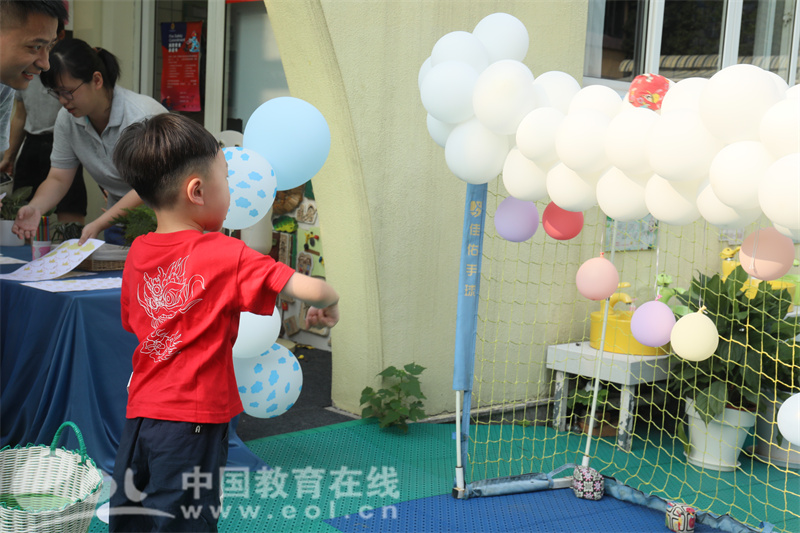 幼儿园还设置了“五彩幸运球门”,彩色的气球迎风飘动,寓意新学期的好运,孩子拿出沙包开启幸运第一投,投出开学好心情。