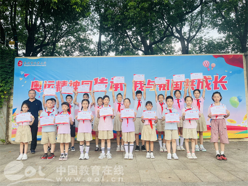 中国教育在线浙江站讯 (编辑 陈显婷 通讯员 赵洪微 摄影 方雅丽 翁育青)夏暑尽,新秋至。硕果丰,学子归。带着对新学期奋斗目标的美好憧憬,为进一步加强学生的爱国主义教育、奥运精神教育及安全教育,鼓励学生以良好的精神风貌投入到新学期的学习中,杭州市北秀小学于9月2日举行了以“奥运精神共传承 我与祖国共成长”的开学典礼活动。