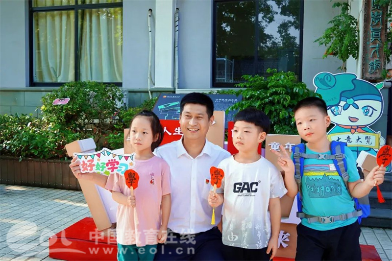 “咚—咚—咚”,当天一早,紫阳小学的校门口响起了一阵阵鼓音。“我们开学啦!”随着新的小伙伴——智能机器人的欢呼,小书童们跨越祝福栏,漫步彩虹毯,开启了新的旅程。一年级的小书童们还收到了“学”字祝福,相信他们在这六年里都能够在这自然与书香萦绕的校园中快乐学习、茁壮成长。
