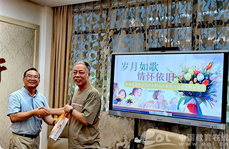中国教育在线浙江站讯 (通讯员 江雅莉)在第40个教师节来临之际,杭州市北秀小学的校园迎来了一批尊贵的客人——曾经在这片土地上辛勤耕耘、如今已光荣退休的老教师们。他们带着对往昔岁月的怀念与对教育事业的深情,齐聚学校,共享美好时光。