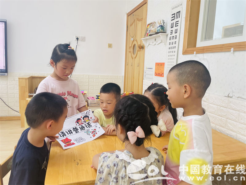 中国教育在线浙江站讯 (编辑 鲁少辛)为了传承弘扬中华优秀传统文化,引导全体教职工及幼儿树立科学的语言观,扎实提高师幼说普通话、用规范字的意识与能力,营造学习使用国家通用语言文字的浓厚氛围,杭州市胜利幼儿园开展了以“童语诵同音,推普筑未来”为主题的推普周系列活动。