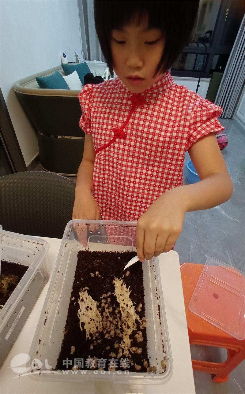 接到任务后,罗依晨尤为兴奋。于是,放学回家后,她就跟爸爸妈妈行动起来,查资料后,网购了椰土和一些配件,为蜗牛搭建了非常洋气的“花园洋房”。