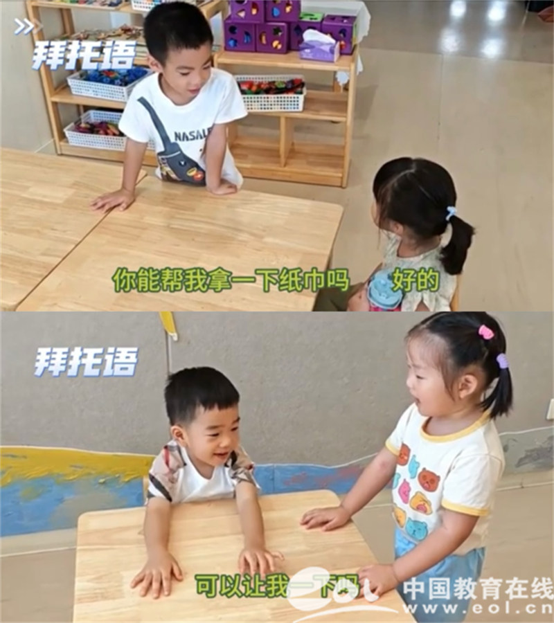 不同年龄阶段的幼儿,开展了一系列的各具特色的推普活动。瞧,小班的礼仪小天使们,正积极响应推普活动。他们在老师的引导下,都能大声地用普通话向老师道早安。