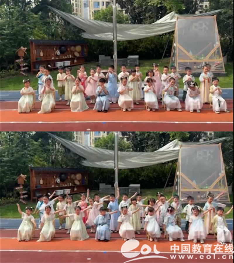“黑眼睛黑头发,我生在大中华,黄土地黄河水,哺育我长大。写的中国字,说的中国话,跳动一颗中国心,我是中国娃!”看,同德大二班和源聚大三班的宝贝们自信大方,口齿清晰,普通话标准,作为中国娃,真自豪。