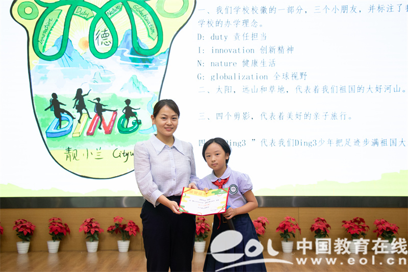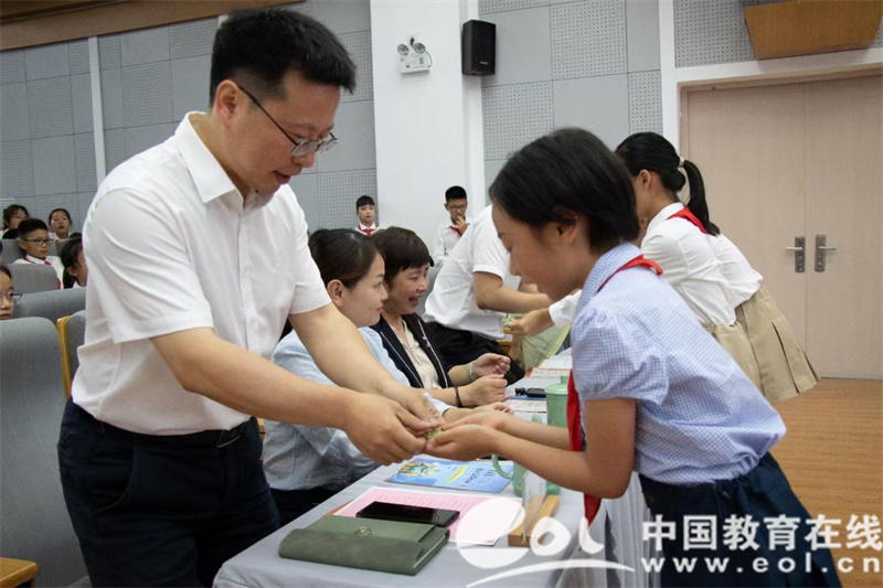 上城区教育学院教育科学研究中心(德育研究中心)副主任茅琼华主任将“童眼看中国“靓小兰Citywalk”手册赠予学生代表。