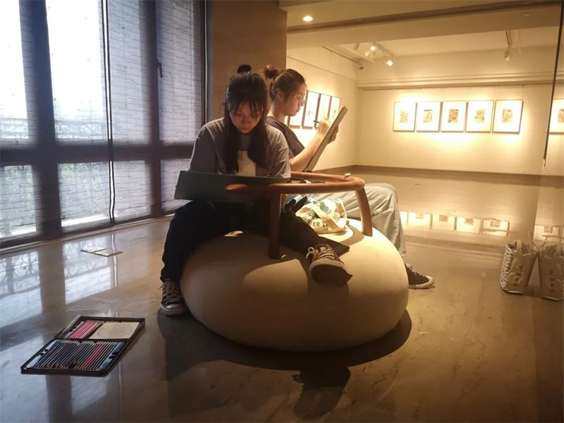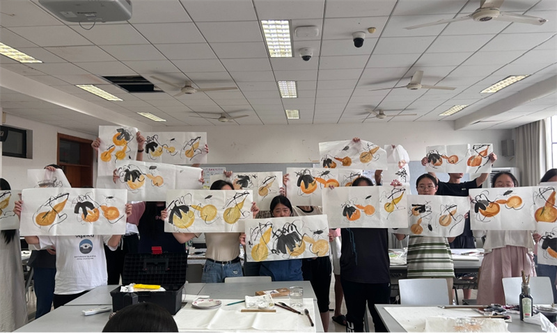此外,周燕还会引导学生理解中国画在中国文化历史中的重要性,掌握一定的表现技法,了解中国画以线造型的艺术特色和作画方式。“我经常鼓励学生以不同观察方法多角度地看对象,体会不同的表现方式带来的绘画效果,还会带着大家进行中国画的临摹和实践创造,从而培养人文修养和审美情趣。”