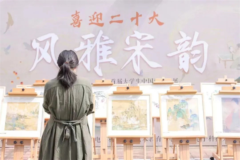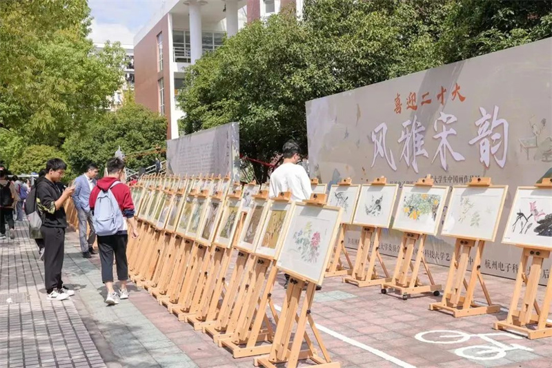 2022年10月,在杭电成功举办了“风雅宋韵·首届大学生中国画作品展”,展出作品的作者都是来自《中国画欣赏与技法》课程的学生。观展者都没想到,杭电还有这样一堂课,这样一群学生,“在杭电这样的综合性大学里还这么有艺术氛围,真的太好了!”有学生感叹道。