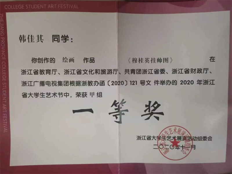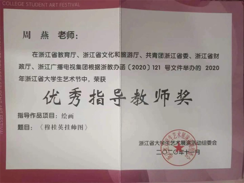 从校园食堂的装饰,到校园首届国画展,再到拿下浙江省大学生艺术节绘画类比赛一等奖,周燕带领一批批杭电学生收获了他们从未想过的成绩。这是独属于热爱传统艺术的学子的荣誉。