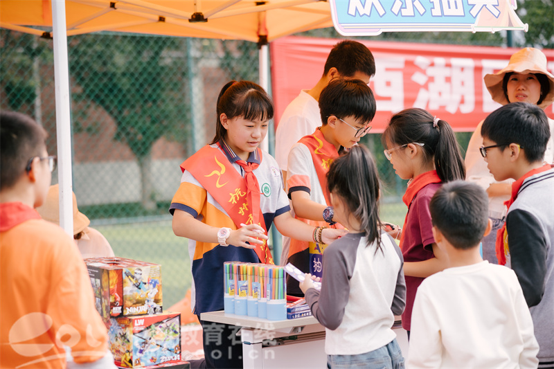 同时,周浦小学20个校级游园摊位的小摊主们,也迫不及待地展示着他们精心准备的科学实验,为全校师生带来了一场精彩纷呈的科学盛宴。红领巾志愿者们穿梭在人群中,热情地引导同学们参与各项活动,成为了活动现场一道亮丽的风景线。而校园小记者们则手持笔记本和相机,穿梭于各个体验区之间,用文字和镜头捕捉同学们的快乐与成长。