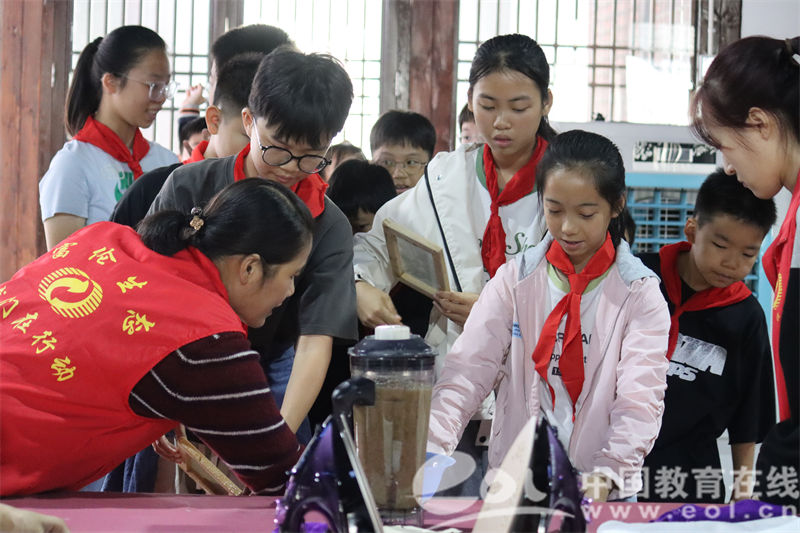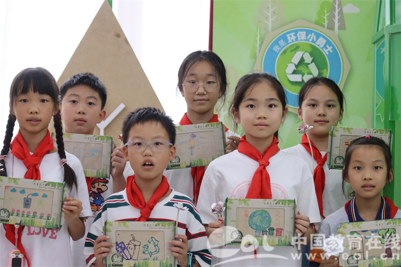 少先队员们还积极参与了一场别开生面的实践活动——利用回收资源再生成的纸浆亲自造纸。在指导老师的帮助下,队员们用这些环保纸浆亲手制作出一张张独特的再生纸。随后,他们在自己亲手制作的再生纸上挥毫泼墨,描绘出一幅幅色彩斑斓的图画。