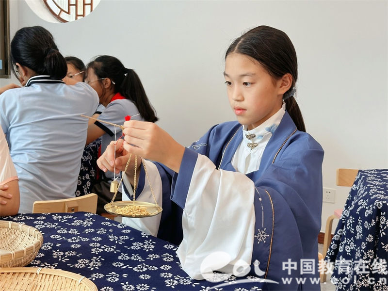 中国教育在线浙江站讯(通讯员 )秋日的校园被秋风卷起,卷进桂花味的清风里。10月18日,杭州市下沙第二小学中医药社团在星火空间举办了一场别开生面的古法桂花香熏制作活动。本次活动旨在让学生们亲身体验传统中药文化的魅力,增强对中华传统文化的认识和兴趣。
