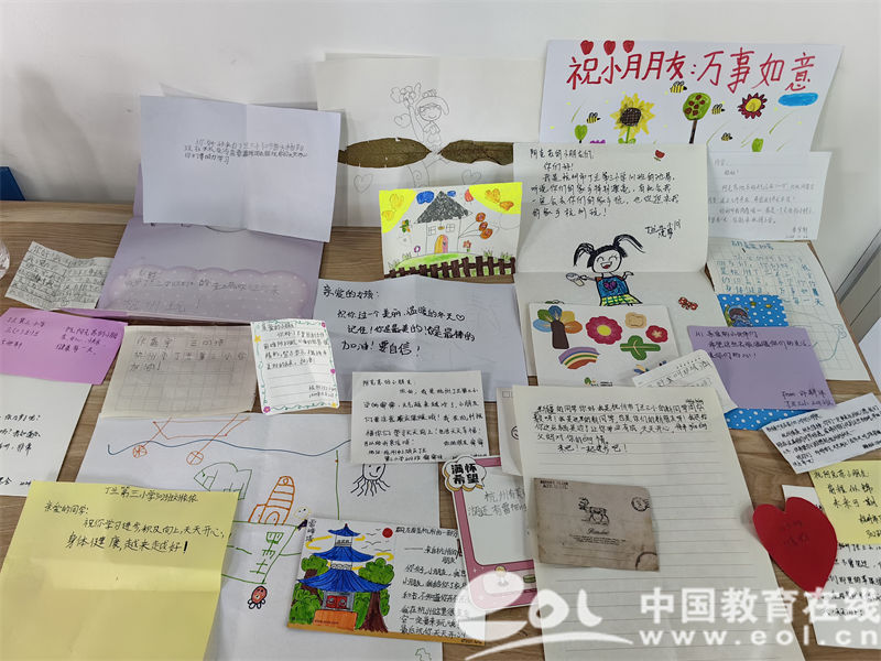 有的小朋友在寄语卡片上充分发挥自己的创意,他们化身为小导游介绍着自己的家乡,也有的小朋友给阿克苏的朋友们送去了最暖心的祝福。他们用五彩的画笔和真挚的文字,描绘着自己的生活和家乡的美景,希望通过这种方式与阿克苏的小朋友建立起心与心的紧密联系。老师们也积极参与其中,不仅捐赠了自己的物品,还在现场组织和指导学生,确保活动的顺利进行。