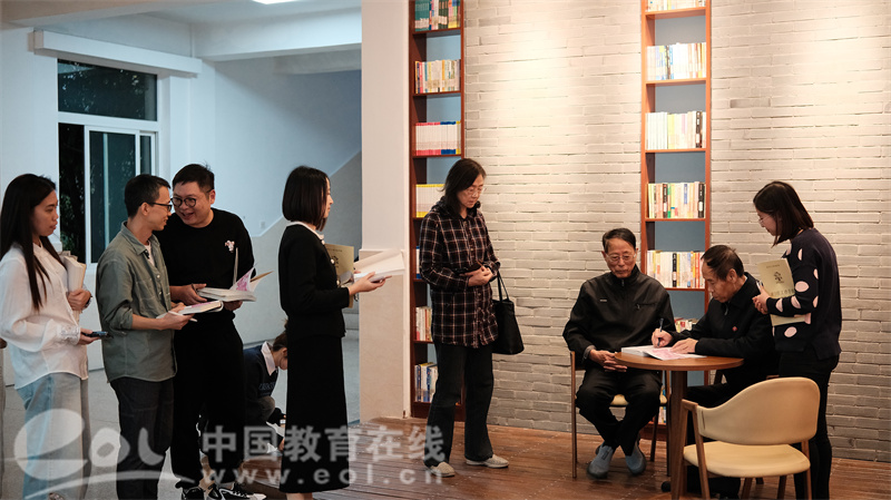 分享结束,教师们热情不减,人手一本魏老师的著作,等待签名。魏书生认真地在每一本书上签名留念。“乐教”二字,一笔一划,饱含对教育的深情和对每一位教师真挚的祝福。