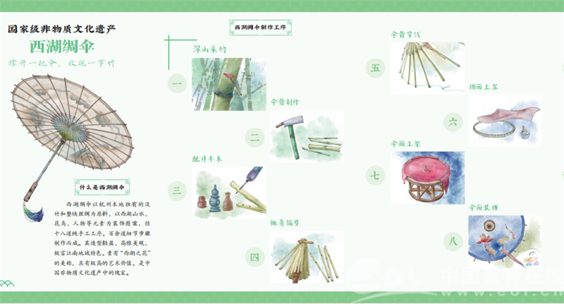 “撑开一把伞,收拢一节竹。”当全场师生在互动中共同道出“西湖绸伞”的核心特色时,屏幕上也出现了与此对应的独特的书口设计。马老师说,这个特别的细节,经过了无数次的调试,才实现了正反两种效果,诠释了西湖绸伞的核心特色,这也是对工匠精神的致敬。她期待同学们在阅读中能感受到这种精益求精的精神,能够收获向美、向善的力量。
