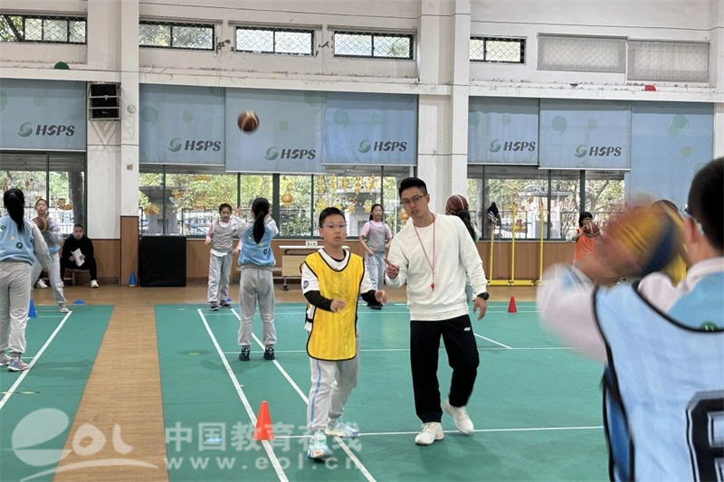 古荡小学陈至尊老师执教的《篮球移动传接球》采用分组、分层、差异化的教学进度,使学生最快速度掌握运球的控球能力。