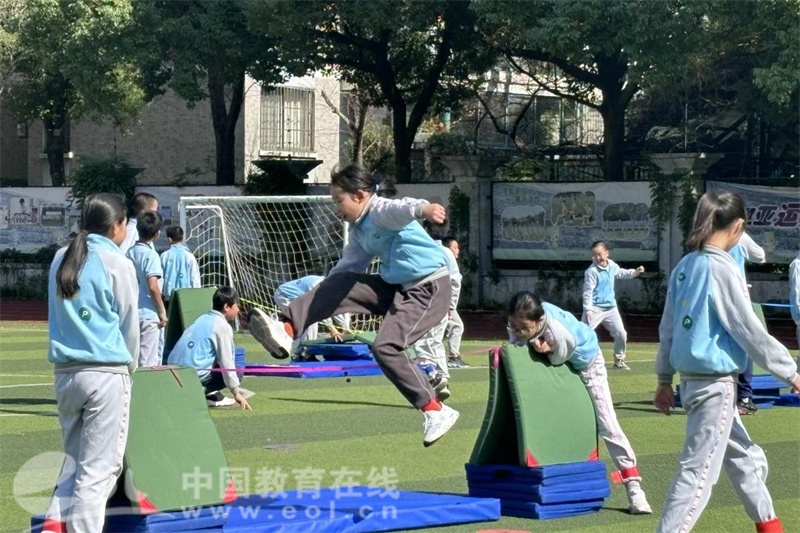 文理二小丁航老师执教《折返跑》,设置了多种形式的折返跑,以“加速、减速、转身后再加速”的技术贯穿课堂,让学生在玩中学。