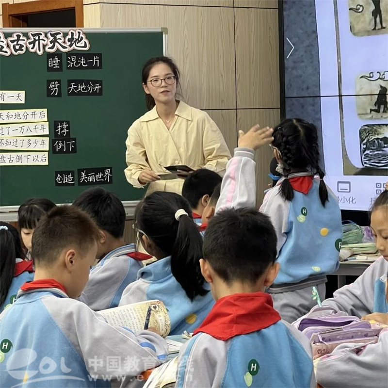 文理二小周颖卿老师执教的《盘古开天地》带领学生领略神话巨作,创设“故事传讲人”的情境,通过搭建思维支架,引领学生深度探究神话故事的博大精深。