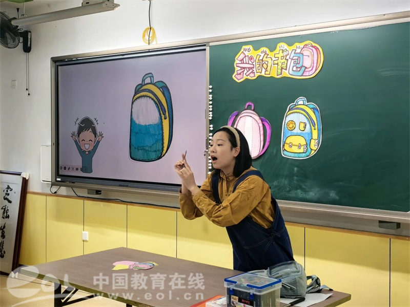 省府路小学吴凌菲老师执教的《我的书包》设计了拼图学具,让一年级的小朋友能够在玩的过程中了解书包的结构和功能,装饰出富有创意的小书包。