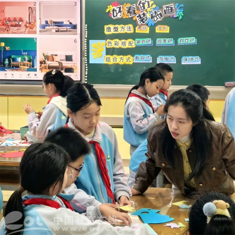 文理二小陈舒彦老师执教的《好看的装饰画》引导学生从了解马蒂斯的作画方式,到理解色彩的对比效果,最终设计出美丽的装饰画作品。