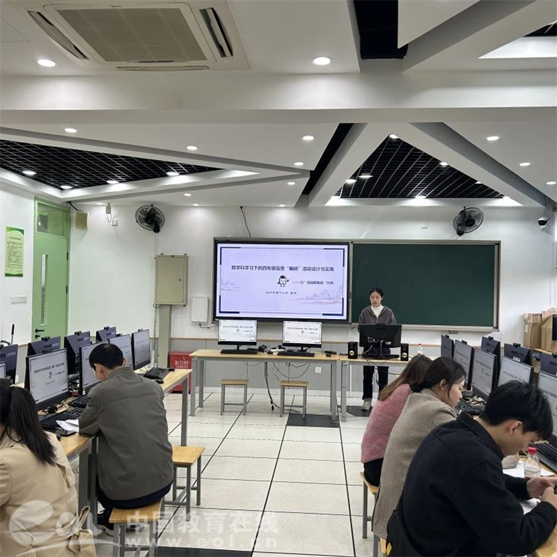 杭州市留下小学袁欢老师的观点报告《跨学科学习下的四年级信息“编码”单元架构与实施——以“校园数智码”为例》,围绕校园真实问题设计主题活动,旨在培养学生实际解决问题的能力。