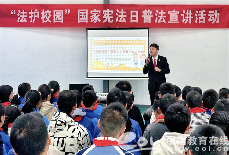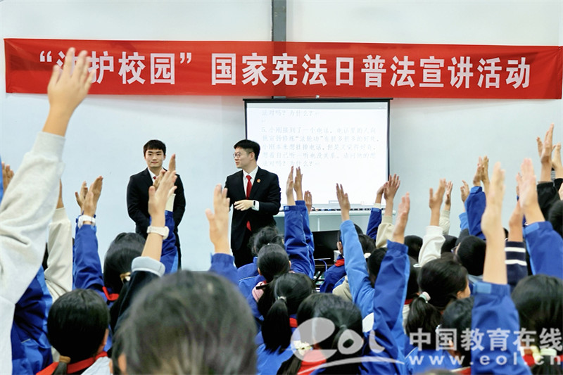 中国教育在线浙江站讯 (编辑 鲁少辛 通讯员 李洋)为进一步提升青少年法治素养,培养青少年尊法、学法、守法、用法的浓厚兴趣,常山县二都桥中心小学携手金川街道办事处及浙江省高院选调生志愿者队伍开展“‘法护校园’国家宪法日普法宣传”主题活动。
