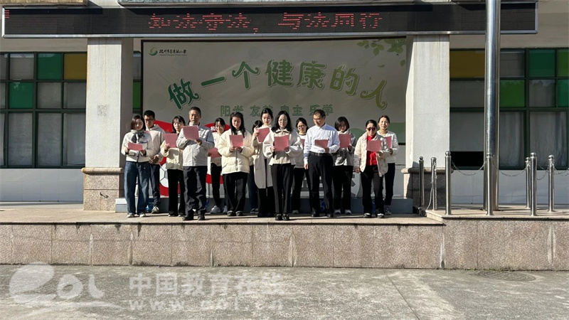 12月2日清晨,当第一缕阳光洒满校园,全校师生齐聚一堂,共同诵读宪法。党团员教师们已经整装待发,他们手持宪法书籍,站在庄严的国旗下,用铿锵有力的声音诵读着宪法条文。这一刻,宪法不再是冰冷的文字,而是化作了一股股暖流,流淌在每一位师生的心间。党团员教师们的率先垂范,为全校师生树立了榜样,激发了大家学习宪法的热情。