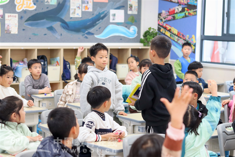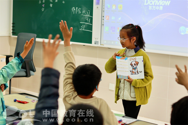 高年级的同学还把在本次英语节收获到的学习成果与一年级的弟弟妹妹进行分享。看着他们举起的一双双小手,还有稚嫩却充满热情的朗读,小老师们也找到了学习语言的自信和成就感,原来分享和交流,可以让彼此都收获满满。