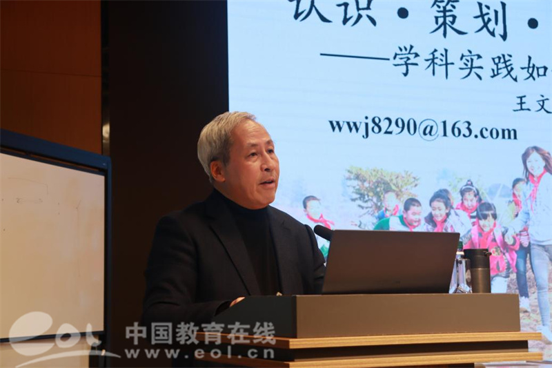 浙江师范大学特聘教授、正高级教师王文军进行了主题为《认识·策划·实施·评价——学科实践如何实施更有效》的微报告。王教授肯定了开展学科实践对于发展学生核心素养的重要意义,结合丰富案例剖析了学科实践的特征、设计的核心要素、实施策略和评价方式,并对本次活动中的展示内容进行点评,为与会教师提供了深刻的洞见和实用的指导。