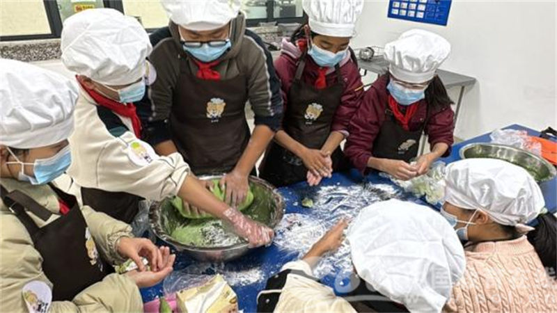 有了前期的扎实学习,孩子们的劳动更有劲了。活动现场,孩子们熟练地和面、揉面、倒汁、搓圆、蒸煮……伴随着叮铃咚隆的入水声,孩子们制作好的一颗颗汤圆滚入沸腾的甜汤里烹调,一碗碗五彩汤圆不久便火热出锅。