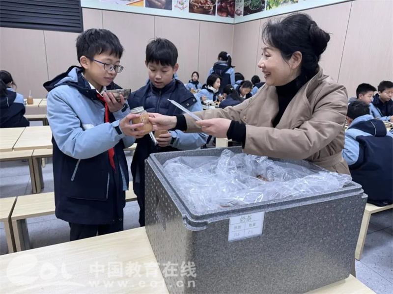 午间,一杯杯热腾腾的奶茶送到同学们手中,香甜的味道和欢声笑语在校园里回荡。