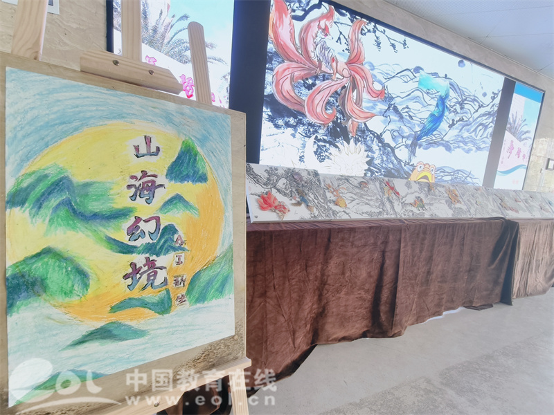 中国教育在线浙江站讯 (记者 陈显婷 通讯员 严慧)近日,杭州市滨和小学的若馨画社同学们在偶然阅读《山海经》后,被其中神秘与奇幻的世界深深吸引,于是,他们萌发了创作一幅“山海幻境”的念头。这一创意不仅激发了同学们的无限遐想,更让他们在实践中体验到了传统文化的魅力与现代科技的结合。