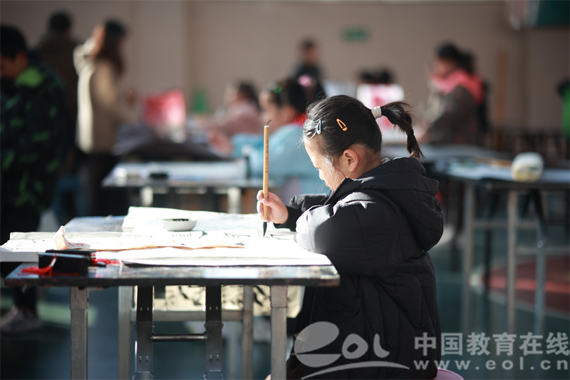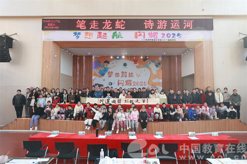 中国教育在线浙江站讯 (编辑 鲁少辛 通讯员 葛珍珍)近日,杭州市周浦小学成功举办了一场别开生面的家校书法大赛,活动现场热闹非凡,吸引了超过100名参赛者热情参与,其中包括学生、家长以及年级组的教师代表。本次大赛以“笔走龙蛇 诗游运河”为主题,旨在通过书法形式,迎接新年的曙光,同时展现周浦小学师生及家长们的书法魅力与风采。八载春秋,周浦小学一直致力于构建独具特色的家校书法文化,传承中华瑰宝。