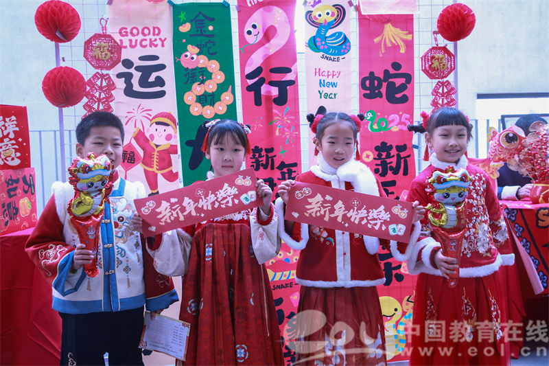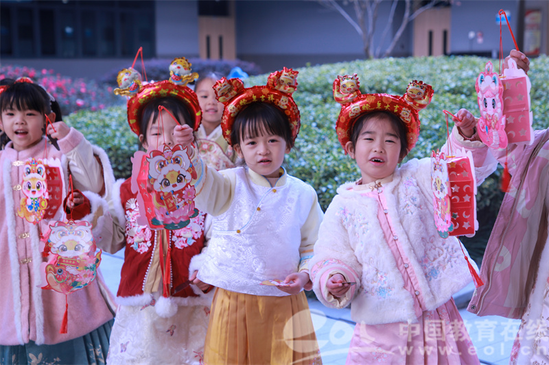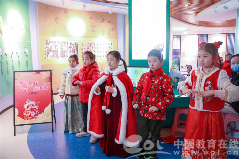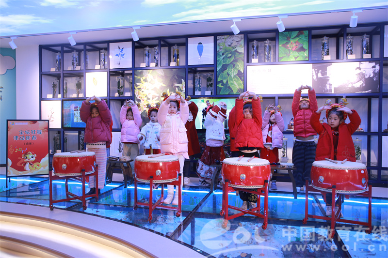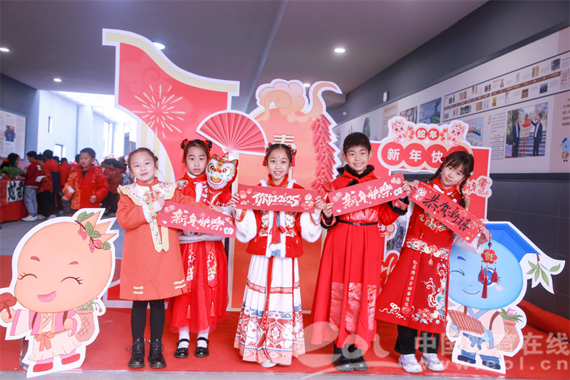 孩子们身着喜庆衣裳,八段锦动作行云流水,新年祝福歌曲歌声悠扬,乐器声清脆悦耳。大家载歌载舞迎新年。