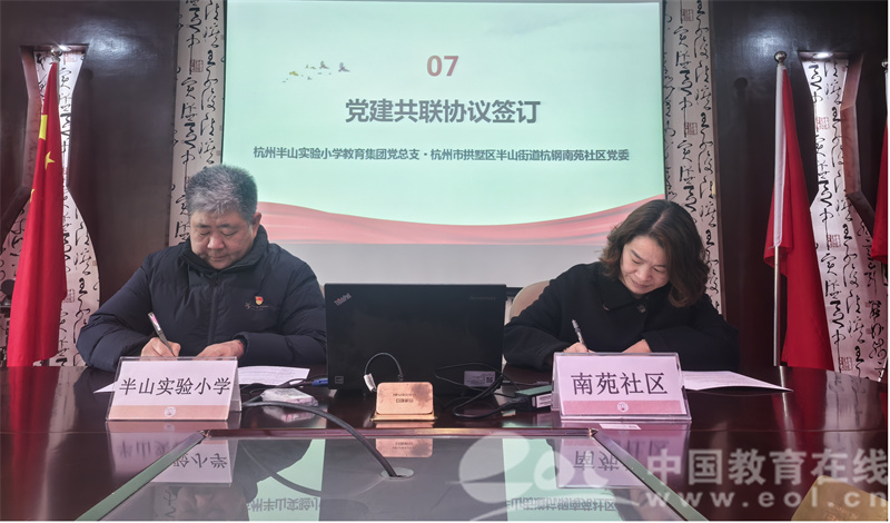 在新时代的背景下,学校以党建工作为引领,与社区携手开展各项助学活动。杭州市半山实验小学教育集团书记袁红强与杭钢南苑社区书记潘慧娣签订党建共建协议,共同推动家校共育工作的深入开展。在今后的家校工作中,双方将汇聚更多的力量,为孩子们创造更优质的成长环境,不断地为教育事业注入新的活力。