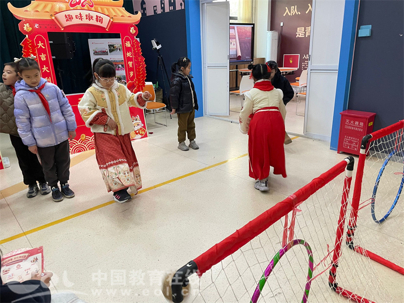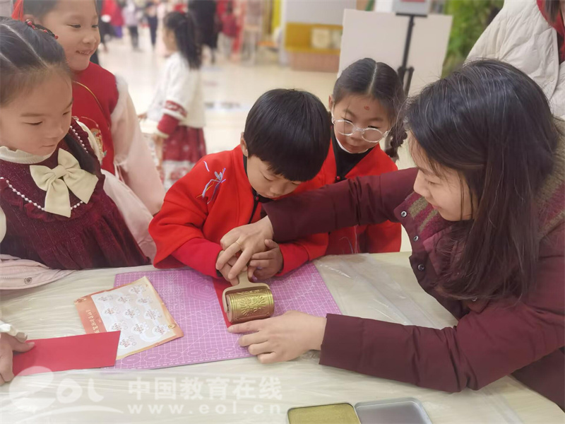 中国教育在线浙江站讯 (编辑 陈显婷 通讯员 钱夏玲 范群婷 摄影 丁洁)近日,杭师大东城小学艺苑校区迎来了别开生面的知识盛宴——“非遗里的中国年”一二年级非纸笔测评游园活动欣然启幕。活动中,孩子们本学期所学到的听、说、读、写、算、运动、科学思维和艺术鉴赏能力等都得以充分表达,表现学科核心素养,体验和感受了丰富非遗文化的魅力,实现寓评于乐、评有所获,评教结合的评价理念。