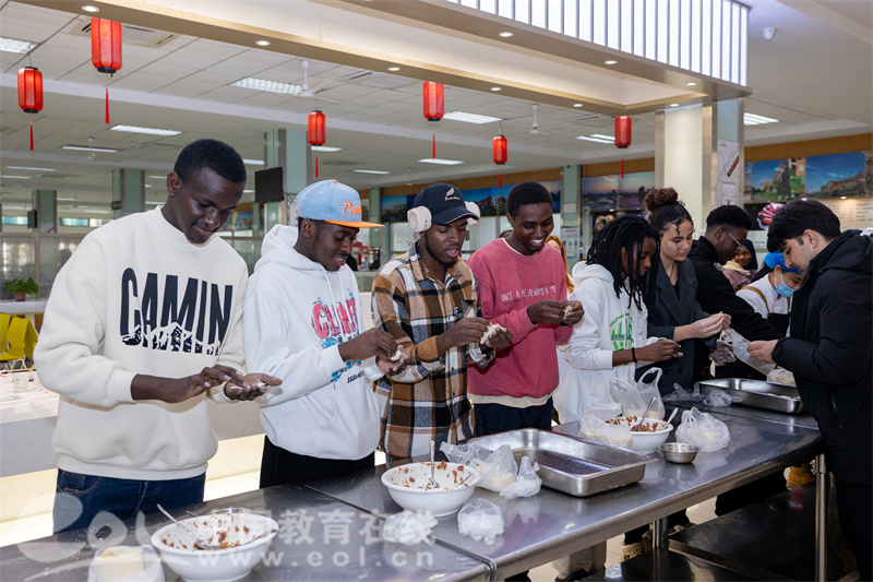 活动现场,留学生们还在老师和工作人员的指导下一起包饺子。来自乌兹别克斯坦的淳浩,正在熟练地包着饺子。这已经是他在中国生活的第六年了。
