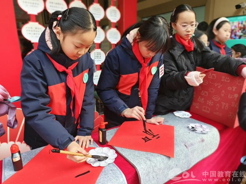 走近校园,首先映入眼帘的是喜庆的拍照打卡处。迎春送福环节更是让孩子们感受到了浓浓的年味。孩子们围在老师身边,好奇地看着那笔锋流转,不一会儿,一个大大的“福”字就呈现在眼前。他们小心翼翼地接过福字,脸上洋溢着幸福的笑容,收到了一份珍贵的礼物。有的孩子还学着老师的样子,提笔写下自己的福字,笔画稚嫩却认真而专注。