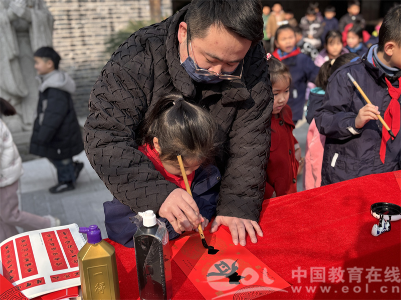 手工区、游戏区、故事区三大体验区更是热闹非凡。学生们有的挥毫泼墨,书写春联;有的体验投壶、踢毽子等传统游戏;还有的用画笔描绘家乡的年俗故事,在动手实践中感受传统文化的乐趣。
