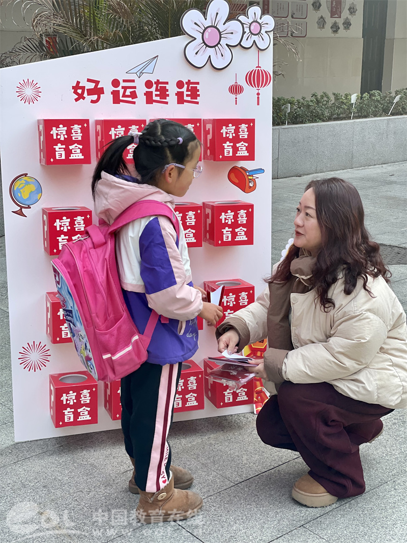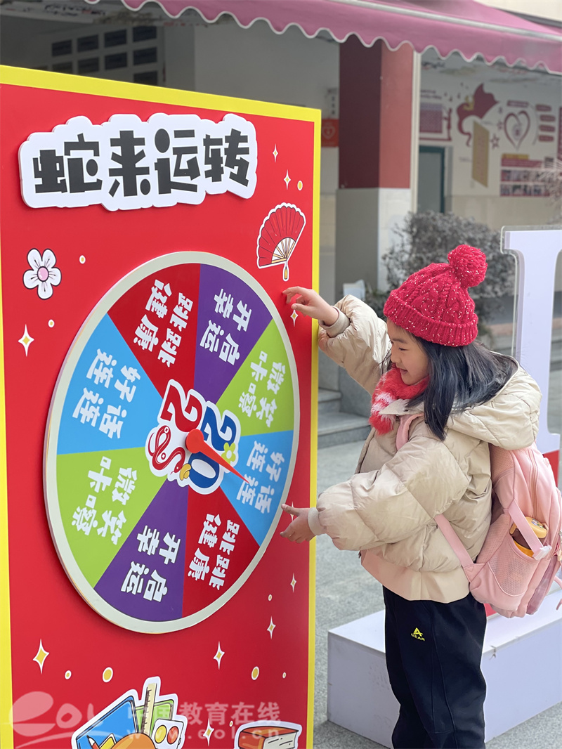 中国教育在线浙江站讯 (编辑 鲁少辛)为了迎接新学期的到来,杭州市江心岛小学特意组织了“蛇来运转,幸运大转盘”活动。活动现场热闹非凡,4—6年级的大孩子们在校园吉祥物——心心和悦悦的热情欢迎下走进了建新校区;北校区1—3年级的小孩子们在四个特殊小伙伴——可爱的机器人邀请下亲密互动。在热闹的音乐声中,孩子们热情高涨,积极参与其中。一分钟跳绳、与校长合影、抽盲盒、好话连连。随着转盘的飞速旋转,同学们体验了多项趣味项目,欢声笑语回荡在校园的每一个角落。