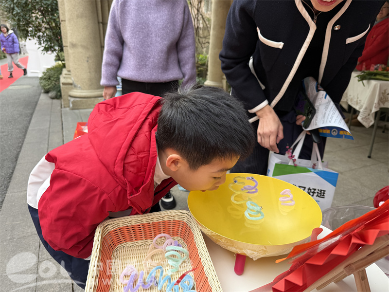 随后,在充满神奇的“小蛇跳舞”环节,小朋友们围在一起,每人面前放着一个容器,容器上,一条条用扭扭棒做成的小蛇安静地趴着。当老师一声令下,孩子们深吸一口气,对着容器大声发出“哦”的声音。神奇的事情发生了,小蛇竟然随着声音的震动,开始扭动起来,就像在欢快地跳舞。孩子们惊讶地张大了嘴巴,随后爆发出阵阵欢快的笑声。