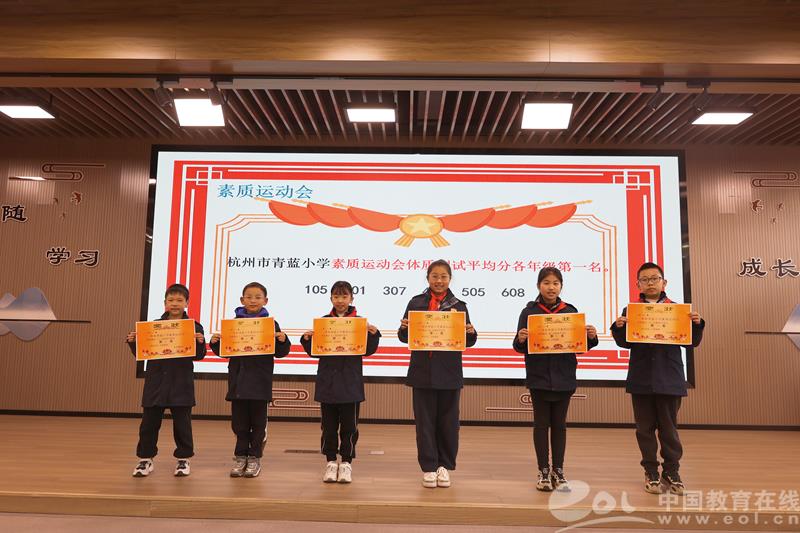 开学典礼在欢快的音乐声中拉开帷幕。全体师生跟着音乐的节奏,热情满满地参与热身活动。“青青·蓝蓝”们一个个精神抖擞,新学期的能量瞬间被点燃。而后,各年级体测平均成绩第一的班级派代表上台领奖,他们手捧奖状,脸上洋溢着自豪的笑容。