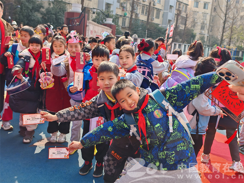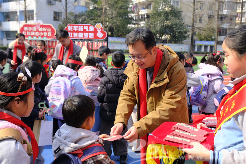 学校领导早早在门口迎接同学们,亲切地和德天娃一一问好,为“小萌蛇”们送上“盲盒红包”,为他们递上精心筹备的开学盲盒红包,瞬间点燃了现场气氛。奖品设置别出心裁,有“一日校长体验券”“共度班级集体生日”“午饭优先打饭权”“广播点歌送祝福券”等等。