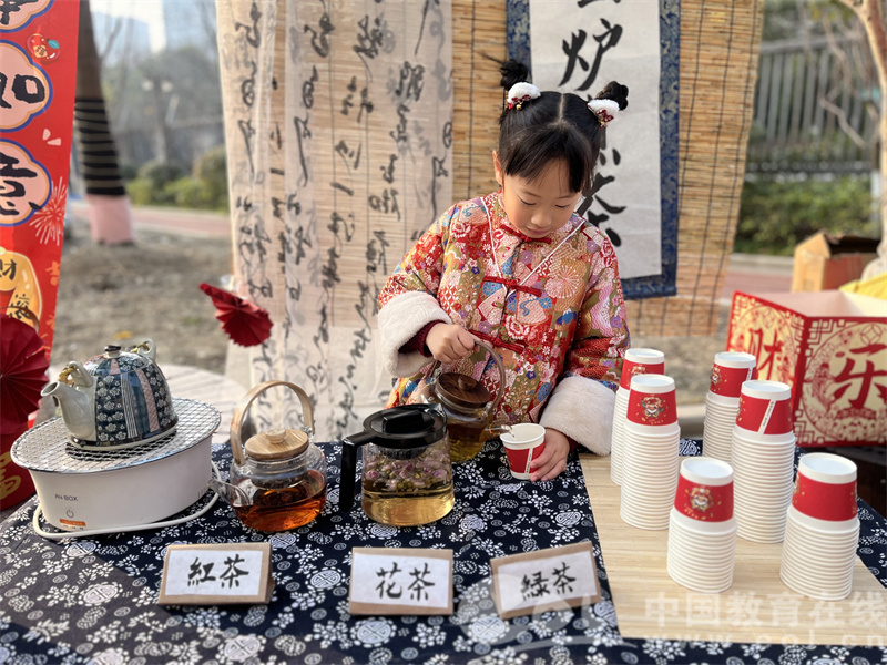 孩子们选择自己喜欢的茶包,亲手制作暖暖的花茶,围坐在小炉旁和同伴品茶聊天,说一说寒假的快乐时光。