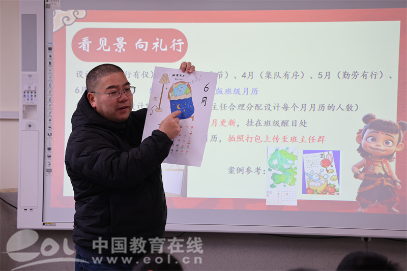 同学们两两合作,绘制班级专属的“景行十礼”月历,也是一次自我学习的过程。有的小组从具体的要求出发,绘制了“言行有仪”的具体内容,如“微笑问好”“尊敬师长”等。有的小组从抽象的视角看问题,绘制了“环保有方”的“地球睡觉啦”漫画图,让同学们在看的过程中,更加入了自己的理解。还有的小组将每天的日子都标注了特色内容,让月历具有更高的观赏性。接下来,教室里的月历将定期更新,陪伴同学们学习生活的每一天。