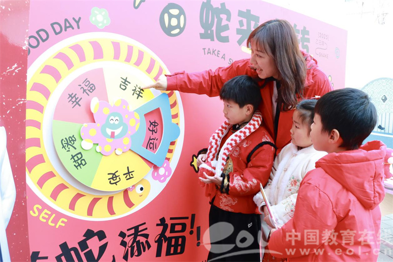 小小的转盘满载了满满的祝福,孩子们可以用自己的小手大力一挥,转动这蛇年幸运转盘,转到不同的祝福语,可以获得不同的小惊喜哦~