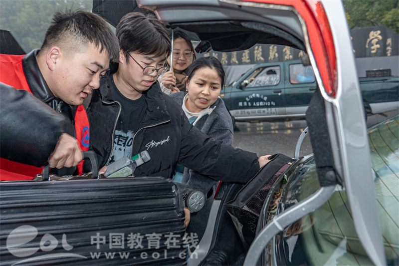 “同学,需要帮忙吗?”“来,行李给我,上车吧!”……一声声亲切的问候,一辆辆贴有“爱心接送车”标识的私家车,成为了雨中最温暖的风景。党员教师们化身“专职司机”,一趟又一趟地往返于校门和宿舍楼之间。